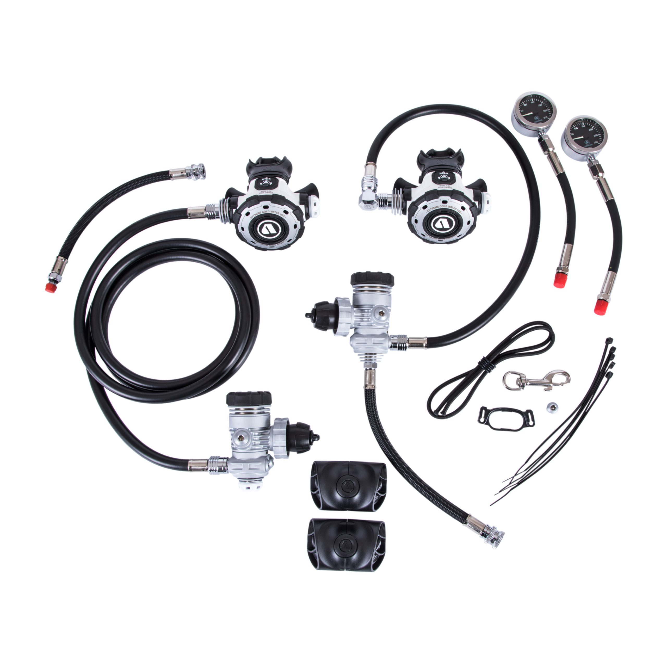 The MTX-R sidemount set is a super tough, rugged, high performance, go anywhere sidemount regulator configuration designed to meet the rigours of cold water and extreme sidemount diving. The MTX-R is highly reliable and also very easy to service out in the field which make it an ideal choice for the expedition and exploration diver.